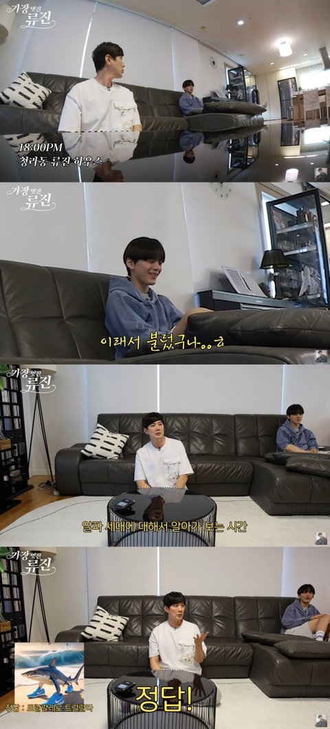 제작진은 앞서 류진이 고3, 중3인 아들들 찬형, 찬호와 관계가 소원해졌다고 밝혔던 것을 언급하며 “오늘은 서로가 친해져 보는 시간을 마련했다. 가까워지려면 요즘 사람들이 쓰는 언어를 알아야 한다고 생각했다”고 말했다. 류진에게 MZ용어 퀴즈를 낸다는 것.