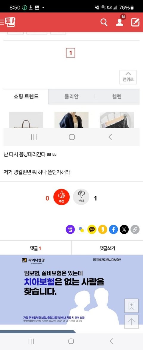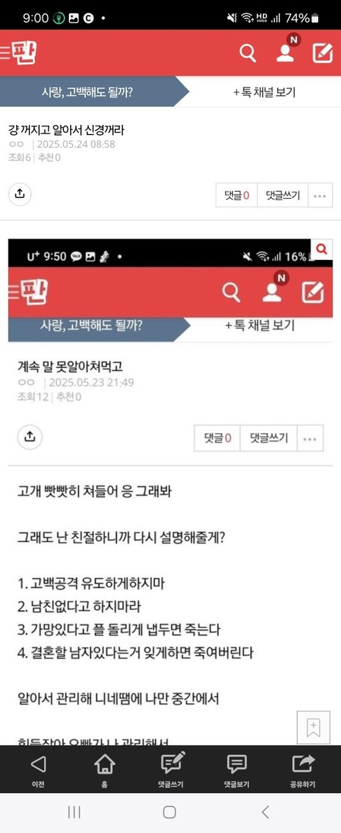 도저히 끝나지 않아서 거의 1년만에 스스로 신상을 공개했다. 최근 두달여간 "자살권유 신변위협글 살해협박"을 담은 글들을 네이트판에 사이버불링 당하고 있다.