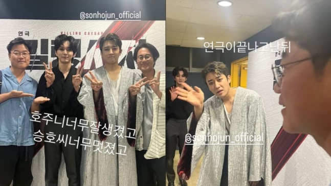 지난 22일 나영석 PD는 개인 계정에 "호준이 너무 잘생겼고 승호씨 너무 멋졌고"라며 다정한 단체 사진을 게시했다. 연이어 "연극이 끝나고 난 뒤"라는 멘트와 함께 인사하는 손호준의 모습을 올리며 친분을 과시했다.
