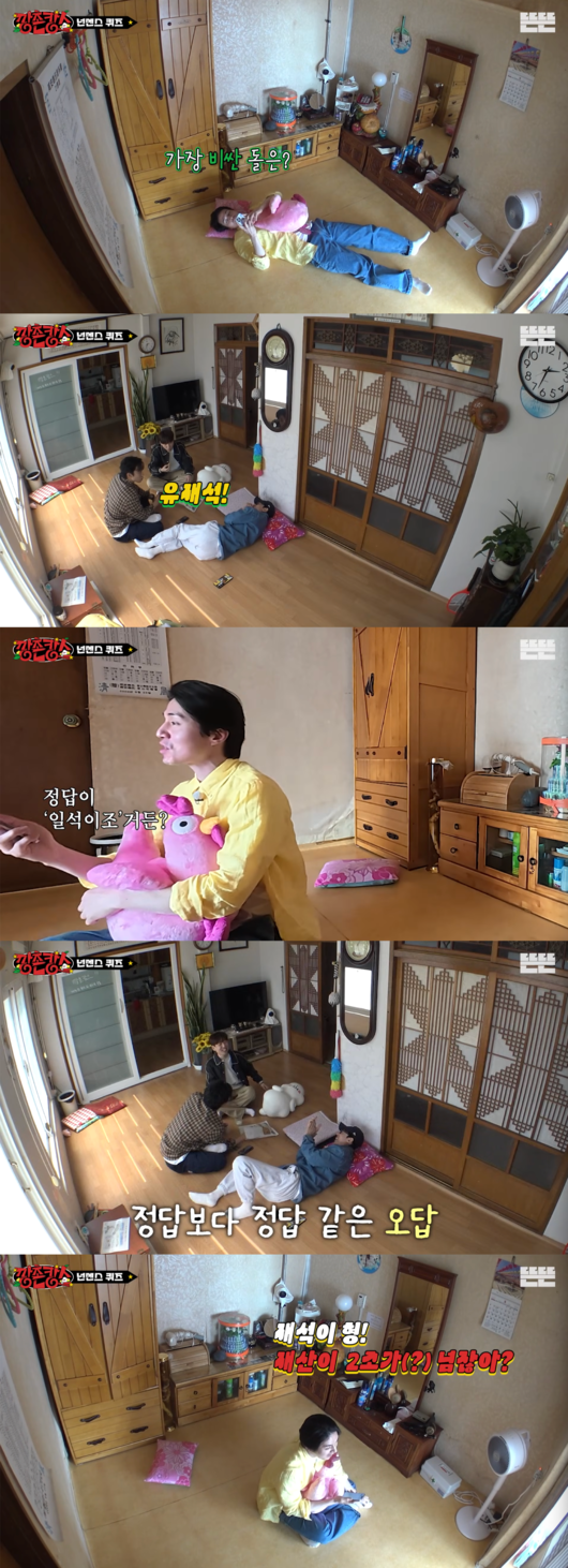 이동욱은 “정답은 일석이조거든? 재석이 형 재산이 2조가 넘잖아”라고 장난을 쳤고, 유재석은 “아이 진짜! 이것들 진짜 말도 안되는 소리하고 있어”라고 울분을 토했다.
