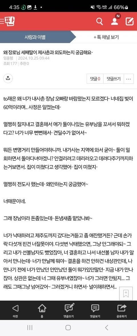 애둘 교회 사촌 유부남이랑 불륜이라고?