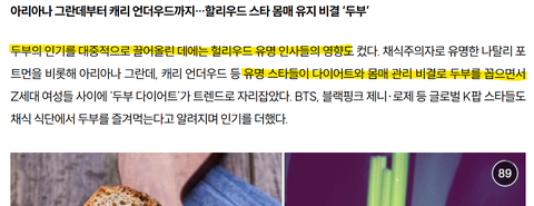 알아보니까 아리아나 그란데랑, 캐리 언더우드?(캐리 언더우드 사실 난 잘 몰라...) 그리고 방탄소년단이랑 블랙핑크도 다이어트할 때 두부 많이 먹는대ㅋㅋ