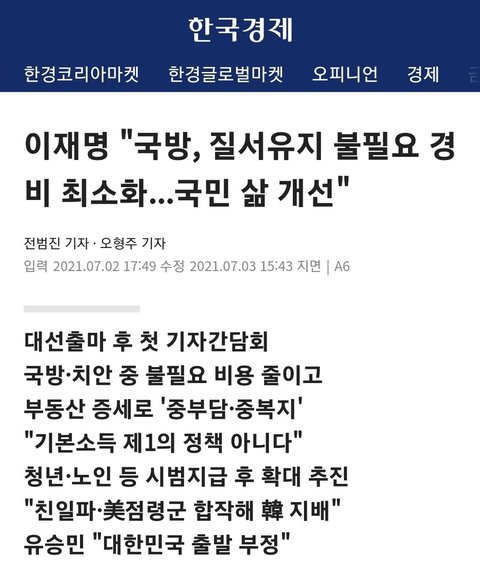 방금 뜬 기사인데 이재명님이 대통령 되면