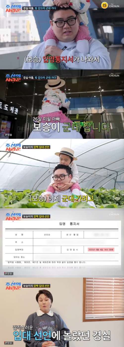 망설이던 그가 오는 6월 4일 입대 사실을 전했다. 이경실이 깜짝 놀라며 "정말로 나왔어? 빨리 갔다 오는 게 나아"라고 말했다. 그러면서도 "진짜지? 거짓말 아니지?"라고 재차 물었다.