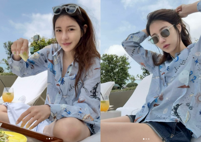사진 속 이지아는 휴가를 떠난 모습이다. 핫팬츠에 셔츠를 매치한 이지아는 선베드에 앉아 여유를 즐겼다. 인형 같은 비주얼이 눈길을 사로잡는다.