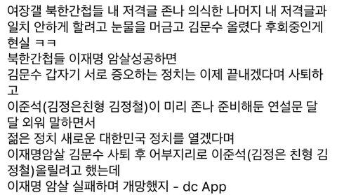 간첩들 이재명암살 후 이준석(김정철)대통령만들려다 망함