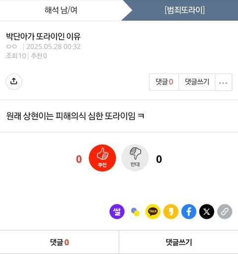 너 네이트판에서 이런 이상한 도배 하는거 부모님도 아시냐 정신과 약 안 먹냐 걔가 의대증원 어쩌고 글 쓰고 나서 박단아 계속 부르네 수진아.. 수진아 수진아 유수진아 그만 좀 쳐 도배하라고