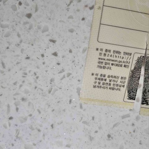 신분증 밟혀서 뽀개졌다. 갈라진거 선있다. 그만해.