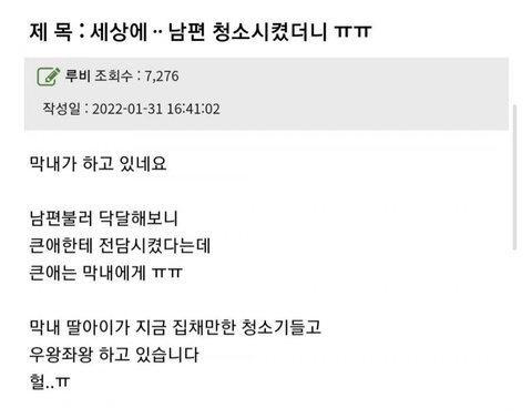 세상에 남편 청소시켰더니 ㅠㅠ