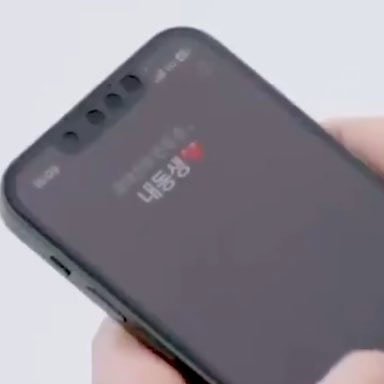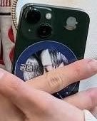 두 손에 소중히 꼭 쥐고 있는 폰에 붙어 있는 스티커...
