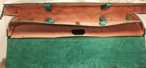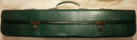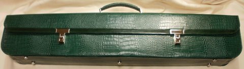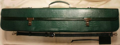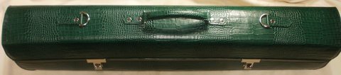 그린 컬러 악어 무늬 엠보싱 처리된 천연 가죽으로 제작한 대금 가방(악기 케이스)입니다.대금 6개이상 수납 가능하며 다른 악기 케이스로 사용 가능하고 별도로 내부 수납 공간과 옆 부분은 지퍼를 부착하여 필요시 공간을 확보하여 사용하기 편리하도록 제작하였습니다.길이 96cm,높이 19cm,두께 14cm)