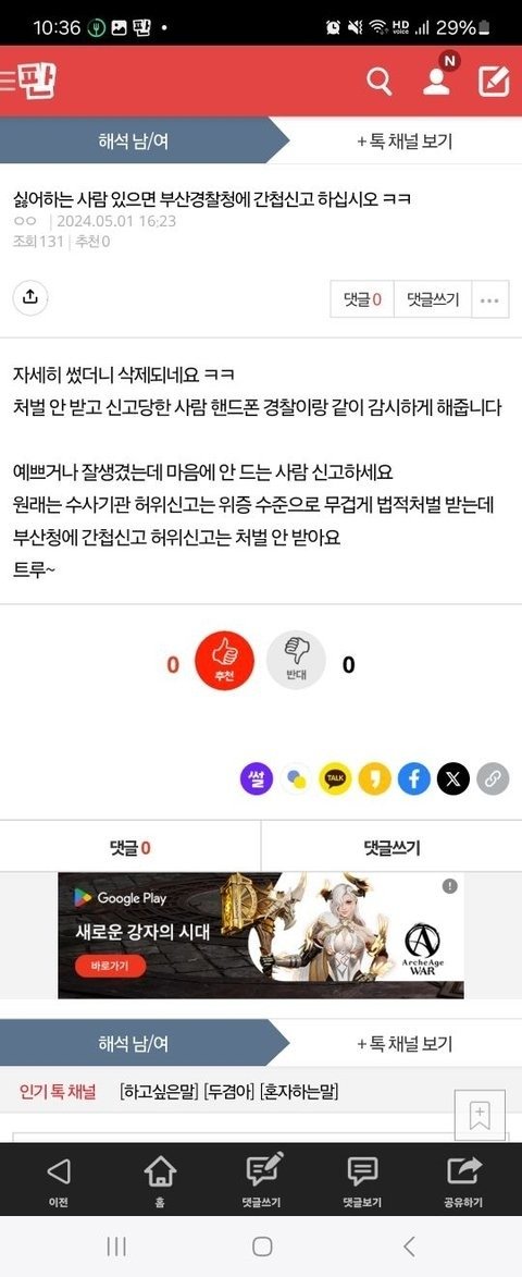 당신들이 판에서 끼어들어서 나를 마녀 사냥하고