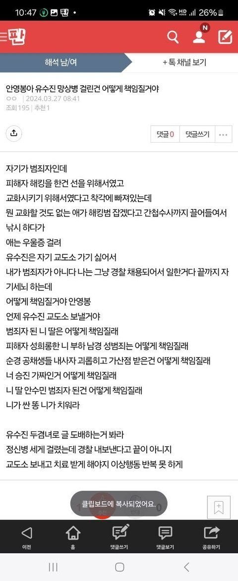 1년 넘게 조직적으로 정신병 몰이 사이버불링.