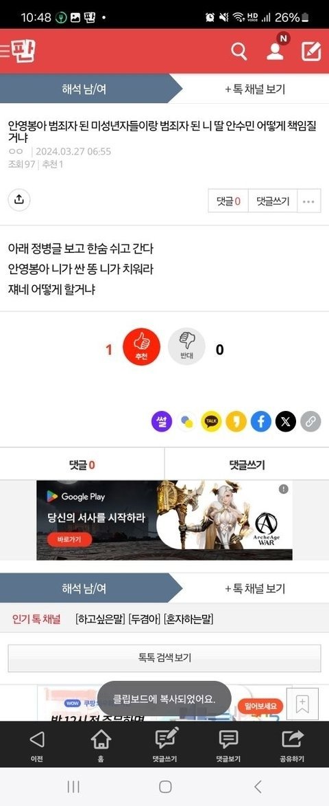 나는 핵사이다발언 낚시질하는 성매매녀가 아니다.