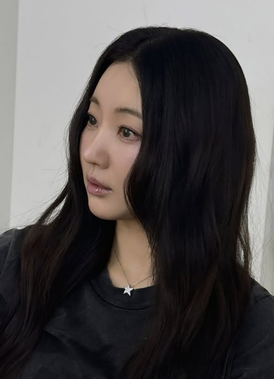 사진 속 김사랑은 긴 흑발 생머리를 자연스럽게 늘어뜨린 채 카메라를 응시하고 있으며, 은은한 미소만으로도 고요하면서도 강렬한 존재감을 드러내고 있다.