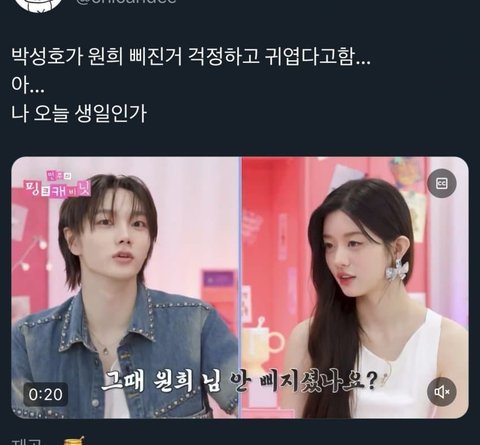 ㅅㅈㅎ 그 얘기가 나올 자연스러운 상황도 아닌데 갑자기 성호가 원희 얘기 꺼낸 건 놀라긴 함 귀엽다고도 하고 괜찮냐고도 하고