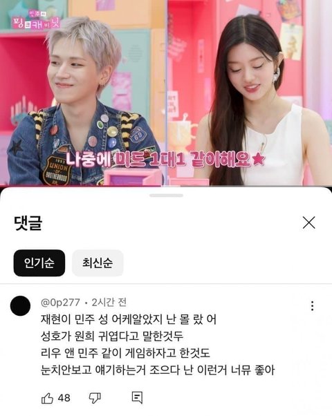 친목하고싶어서 자꾸 게임 같이하자 조르는거 겁나깬다 팬들 눈치도 안보내