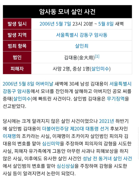 이재명 후보님이 살인자 조카를 심신미약으로 변호했고, 조카는 출소했는걸로 아는데 (정확하지는 않음)