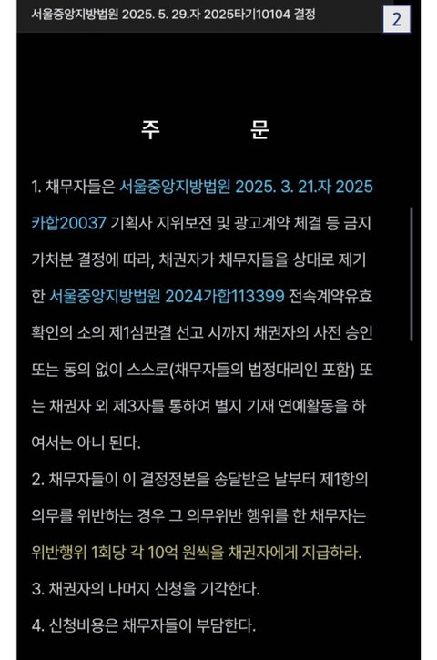 사실 저게 맞긴하지.. 자기들이랑 잘 맞는 프로듀서 내놓으라고 계약서고 뭐고 법 위에 있는 것 마냥 행동했는데 판사가 곱게 봤을까싶다