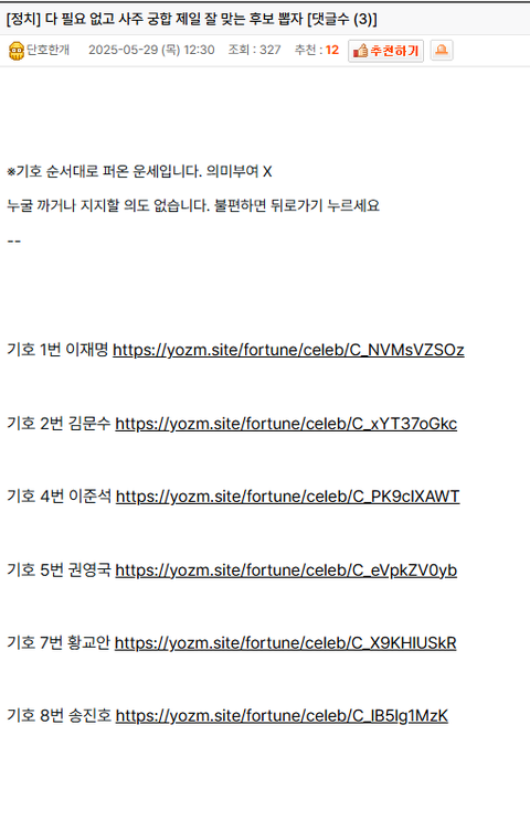 기호 2번 김문수 https://yozm.site/fortune/celeb/C_xYT37oGkc