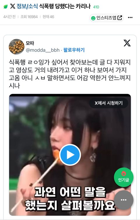 카리나 식폭행이라는 단어 썼다고 까이는데 어케생각함
