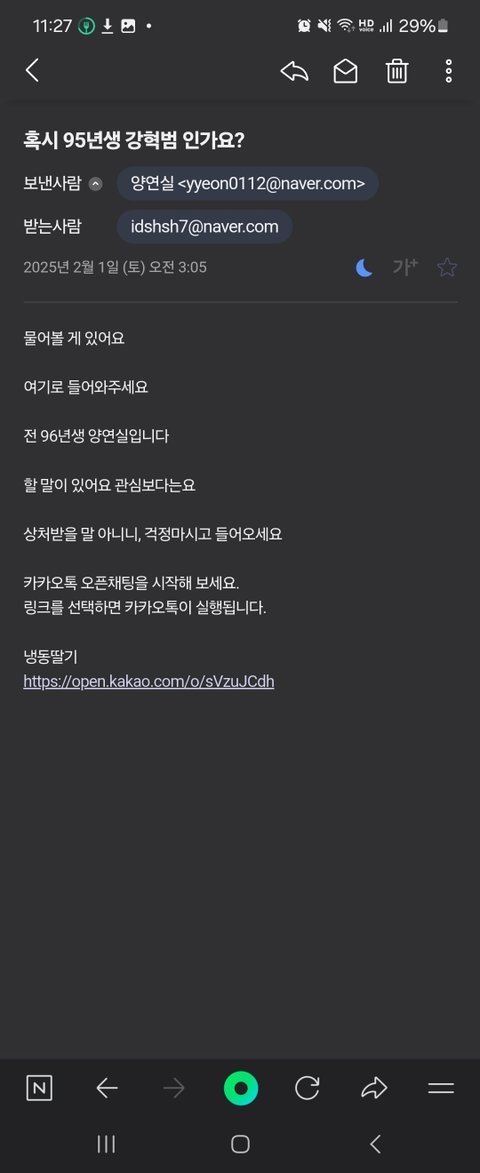 내 메일로 카톡채팅방 들어오래서 갔더니