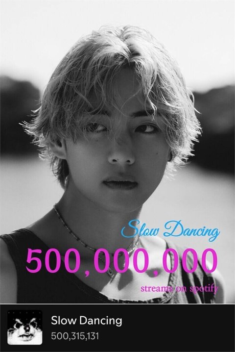 방탄소년단(BTS) 뷔의 '슬로우 댄싱(Slow Dancing)'이 세계 최대 음원 플랫폼 스포티파이(Spotify)에서 5억 스트리밍을 돌파하며 글로벌 인기를 자랑하고 있다.