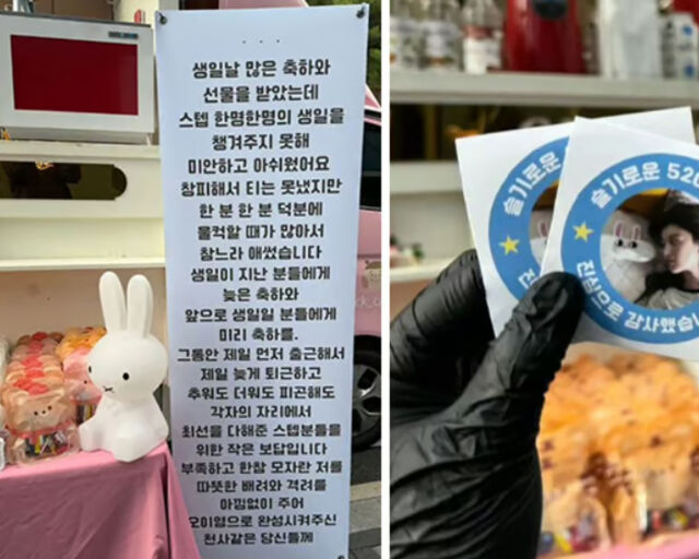 사진에는 고윤정이 직접 쓴 메시지가 입간판에 담겼는데 "생일날 많은 축하와 선물을 받았는데 스태프 한 명 한 명의 생일을 챙겨주지 못해 미안하고 아쉬웠다. 그동안 제일 먼저 출근해서 제일 늦게 퇴근하고 추워도 더워도 피곤해도 각자의 자리에서 최선을 다해준 스태프분들을 위한 작은 보답"이라고 말했다.
