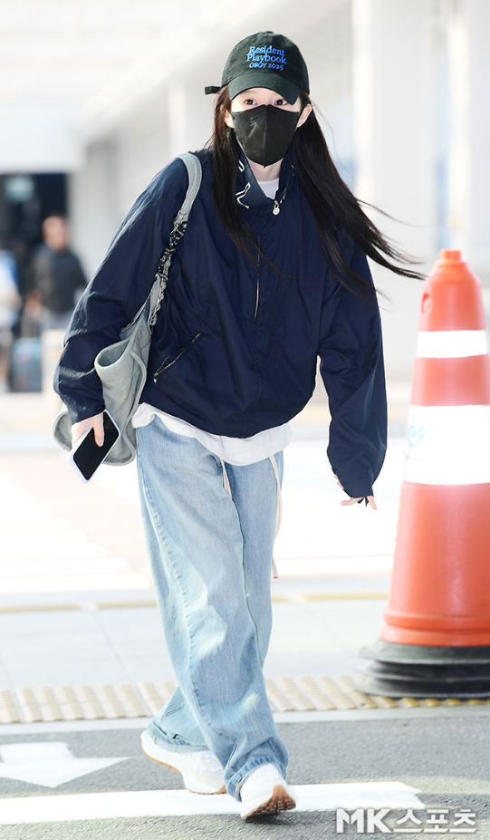 고윤정은 ‘Resident Playbook OBGY 2025’라는 레터링이 새겨진 볼캡에 검정 마스크를 착용한 채 나타났지만, 그 속에서도 스타 고유의 아우라가 흘러나왔다.사진=김영구 기자이날 그녀는 ‘Resident Playbook OBGY 2025’라는 레터링이 새겨진 볼캡에 검정 마스크를 착용한 채 나타났지만, 그 속에서도 스타 고유의 아우라가 흘러나왔다.그녀가 선택한 공항패션은 전체적으로 톤 다운된 네이비 바람막이 재킷과 와이드 핏 라이트 데님 팬츠, 화이트 스니커즈로 구성됐다. 여기에 그레이 숄더백을 매치해 무심한 듯 편안한 무드를 연출했으며, 깔끔하게 풀어내린 생머리는 특유의 단정함과 자연미를 배가시켰다.