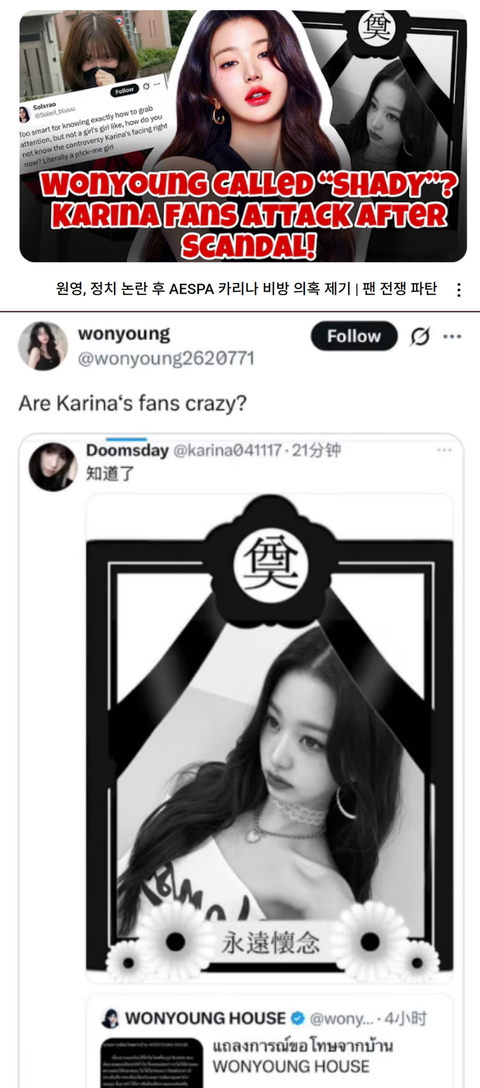 (니네카리나 블핑급 아니니깐 원영이가 의식한다는둥 견제한다는둥 착각 좀 그만ㅉ)