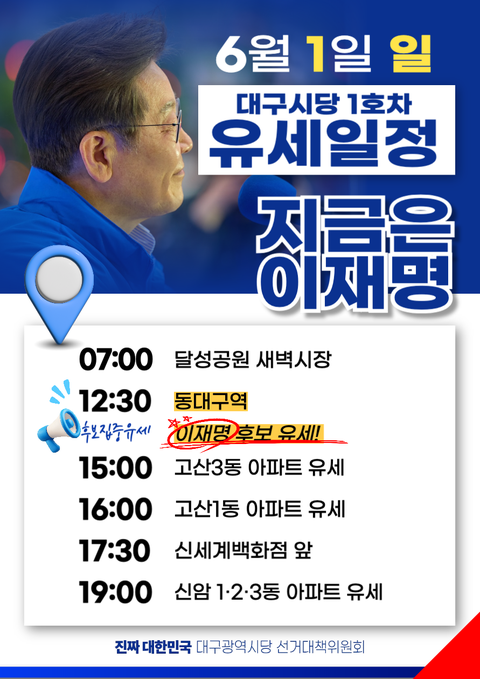 대구시당 1호차 유세일정(6월1일)(feat. 이재명!!!)