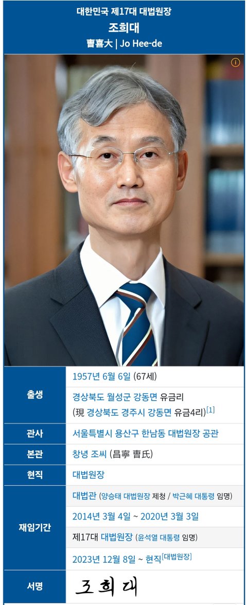 (사진3 설명) 조희대 대한민국 대법원장 <출처: NAVER 나무위키>