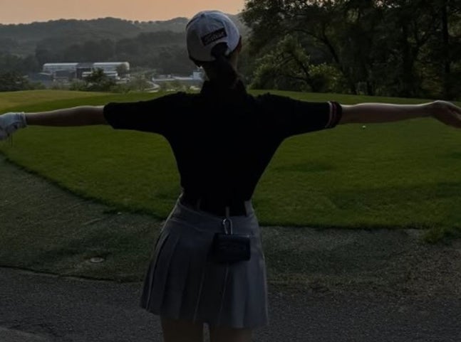 공개된 사진엔 골프 라운딩을 만끽 중인 소희의 모습이 담겼다. 사진 속 소희는 붉은 노을을 배경으로 슬랜더 몸매를 뽐내며 여전한 요정미를 발산했다.