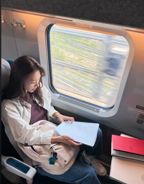 [OSEN=오세진 기자] 배우 이연희가 기차 안에서도 일에 집중하는 모습을 보였다.