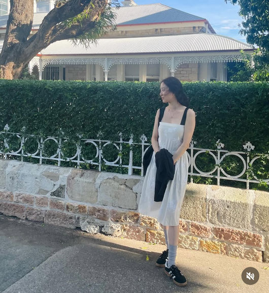 이날 정려원은 특유의 곱슬머리가 귀엽게 느껴지는 패션을 선택했다. 면 소재의 화이트 컬러 원피스를 입은 것인데, 대신 그의 긴 목과 가녀린 어깨는 드러낸 채, 청순한 매력을 뽐냈다. 그러면서도 정려원은 청바지를 배치해 자유로운 느낌을 자아내기도 했다.