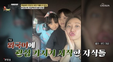 한그루는 "요즘 애들이 외국어를 불어볼 때가 많다. 잊어버렸는데, 티 내지 않고 유창한 척을 한다"라며 훌쩍 성장한 두 자녀, 쌍둥이 자매를 언급했다.