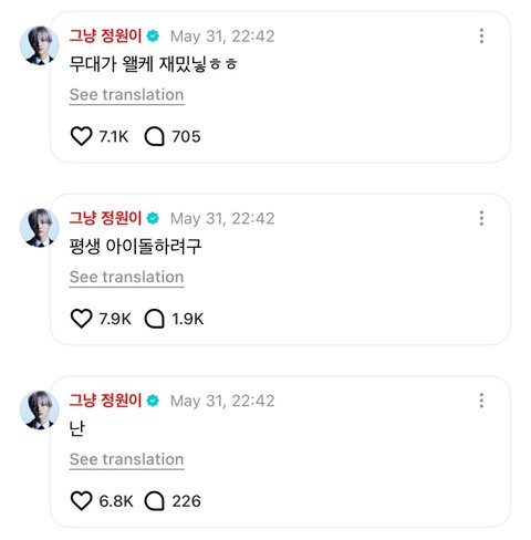 정원이는 진짜 다른 아이돌이랑은 다름 좋아해보면 알아...
