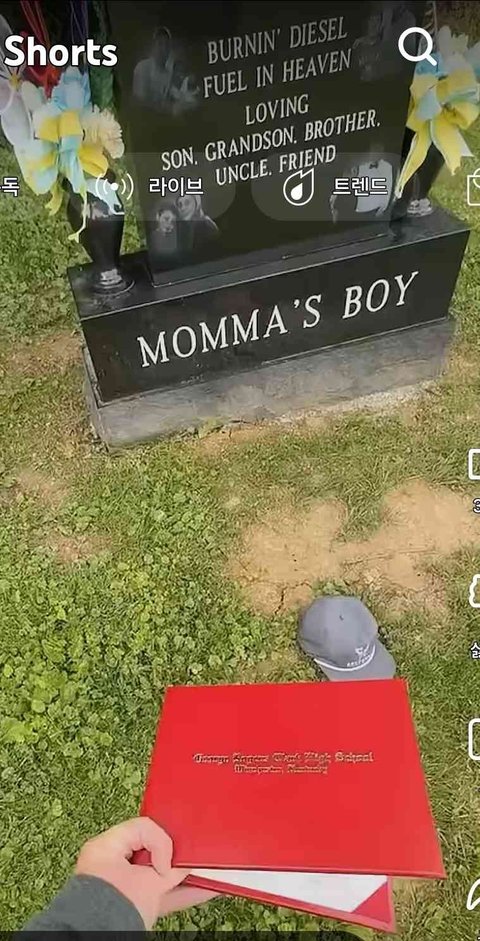 죽은 동생한테 졸업했다면서 무덤 찾아간 내용인데 뭔가 폰들고 찍는 모습 상상하니까 신기함 제3자가 찍어주는것도 아니고 난 저런 상황에서는 도저히 찍어서 sns 업로드할 생각조차 안날것같은디
