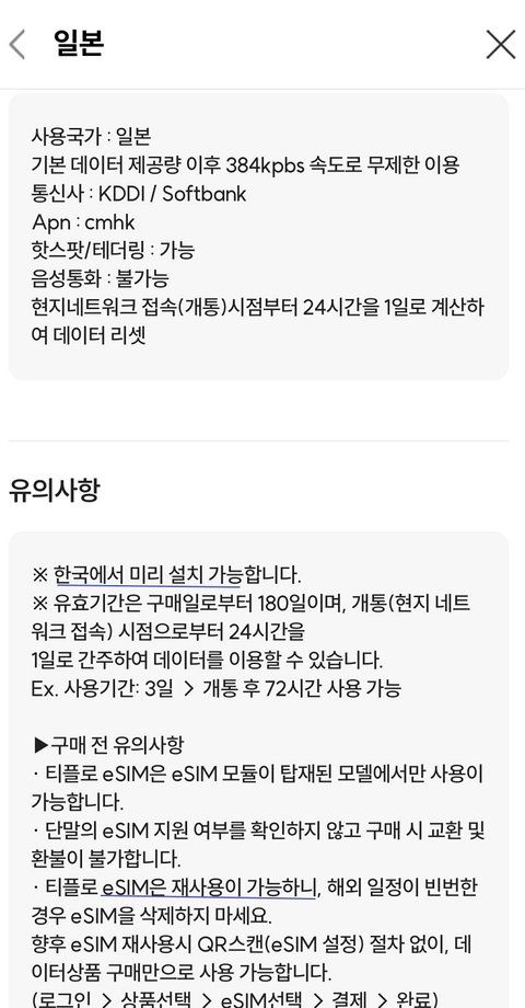 지금쓰는 티플로 이심에서 일본 하루 2기가씩 5일 쓰더라도 8천원 밖에 안합니다