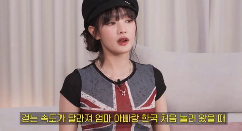 민니: (한국와서) 성격 완전 달라졌어요! 걸음 원래는 진짜 천천히 걸었어! 근데 한국오고나서 진짜 빨리 걷게 되는거야..! 속도가 달라져!!