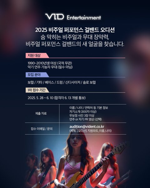 [VID 엔터테인먼트] 2025 비주얼 퍼포먼스 걸밴드 멤버 공개 오디션