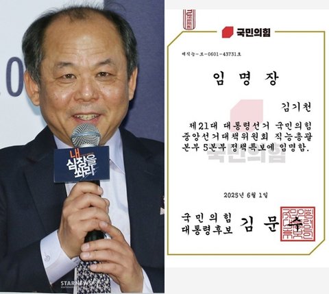 배우 김기천이 동의한 사실이 없음에도 '국민의힘 선거대책위원회 임명장'을 받는 황당한 상황을 겪었다. 그는 지난 대선 때 이재명 더불어민주당 후보를 공개 지지했을 뿐만 아니라, 윤석열 전 대통령의 비상계엄 선포 사태에 꾸준하게 비판 목소리를 냈던 인물이다.김기천은 2일 자신의 X 계정에 "아침부터 이게 무슨 일이냐"라며 국민의힘 선거대책위원회로부터 받은 '임명장' 인증 사진을 올렸다.