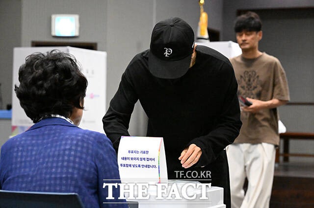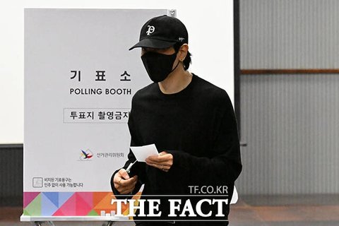 가수 박효신이 3일 오후 서울 용산구 중부기술교육원에 마련된 한남동 제3투표소에서 제21대 대통령선거 투표를 마치고 나서고 있다.