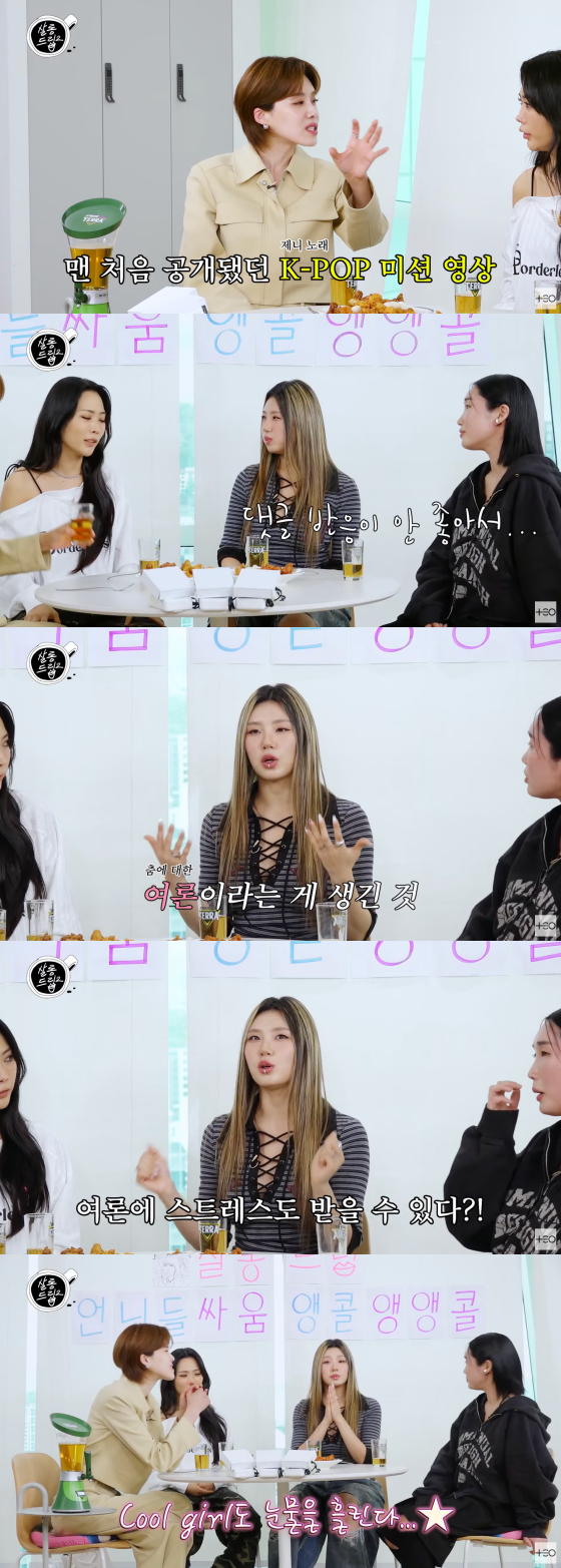 허니제이는 "처음에는 반응이 좋아서 다행이었다"면서 "다음 날 연습실에 모였는데 애들 표정이 다 안 좋더라. 댓글 반응이 안 좋다는 거다. 하룻밤 새 반응이 갈렸다"고 답했다.