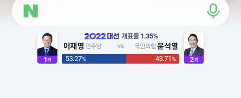 그때 캡쳐본 보니까 이재명이 초반에 10프로 높았더르..