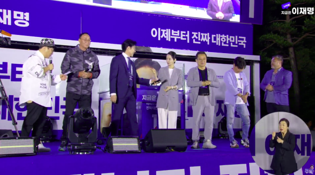 이날 지지자들과 연예인들은 윤일상이 작곡한 '지금은 이재명'을 열창했다.