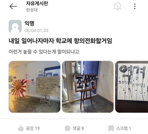저급한 글.. 현재 한성대 재학 중인 회화과 남학생이 직접 그린거라하네요