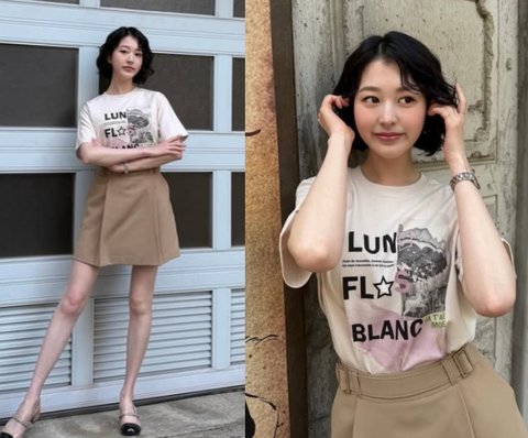 공개된 사진 속 장다아는 레터링 프린트가 들어간 반소매 티셔츠에 하이웨이스트 베이지 미니스커트를 매치해 단정하면서도 세련된 여름 데일리 룩을 완성했다.