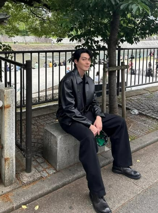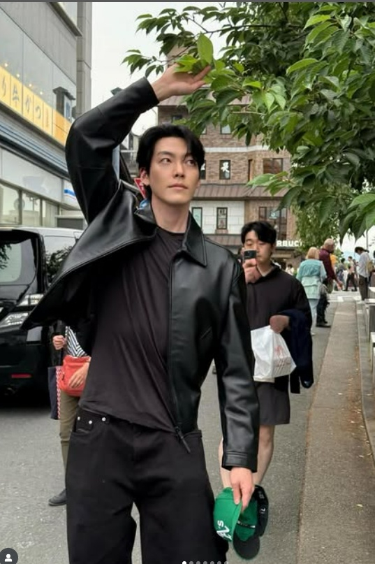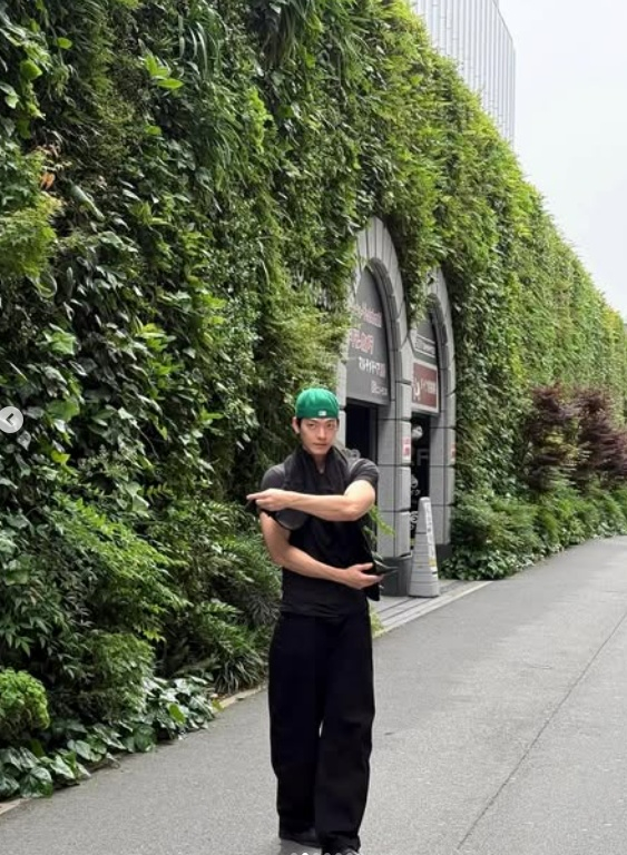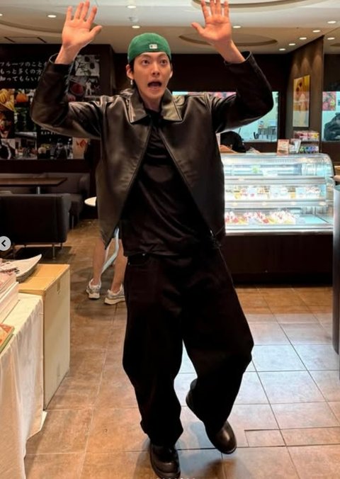 /사진=김우빈 SNS김우빈은 가죽재킷 등 올블랙 패션 속 초록색 모자를 쓰고 패션감각을 발휘했다.