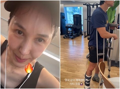 이와 함께 다리에 부상을 입고 목발을 짚고 있는 엄태웅의 사진과 더불어, "결국 같이 해야겠다며 PT 끊음"이라는 글을 덧붙였다.